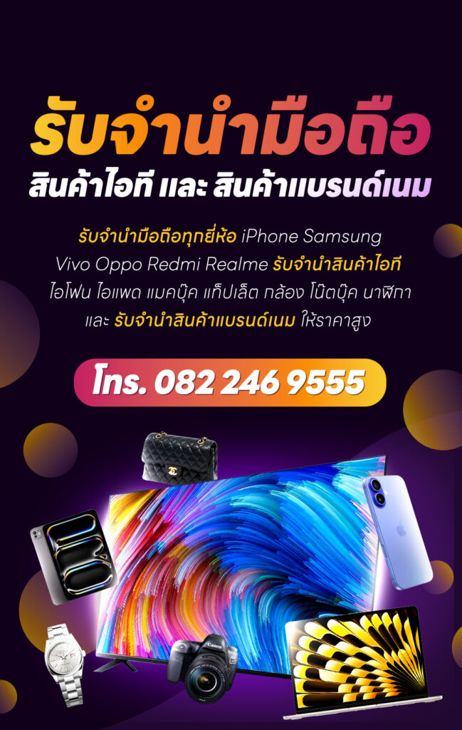 บริการรับจำนำมือถือทุกยี่ห้อ ไม่ว่าจะเป็น รับจำนำ iPhone Samsung Vivo Oppo Redmi Realme และ รับจำนำสินค้าไอที ไม่ว่าจะเป็น รับจำนำไอโฟน รับจำนำไอแพด รับจำนำแมคบุ๊ค รับจำนำแท็ปเล็ต รับจำนำกล้อง รับจำนำโน๊ตบุ๊ค รับจำนำนาฬิกา ให้ราคาสูง ดอกเบี้ยต่ำ